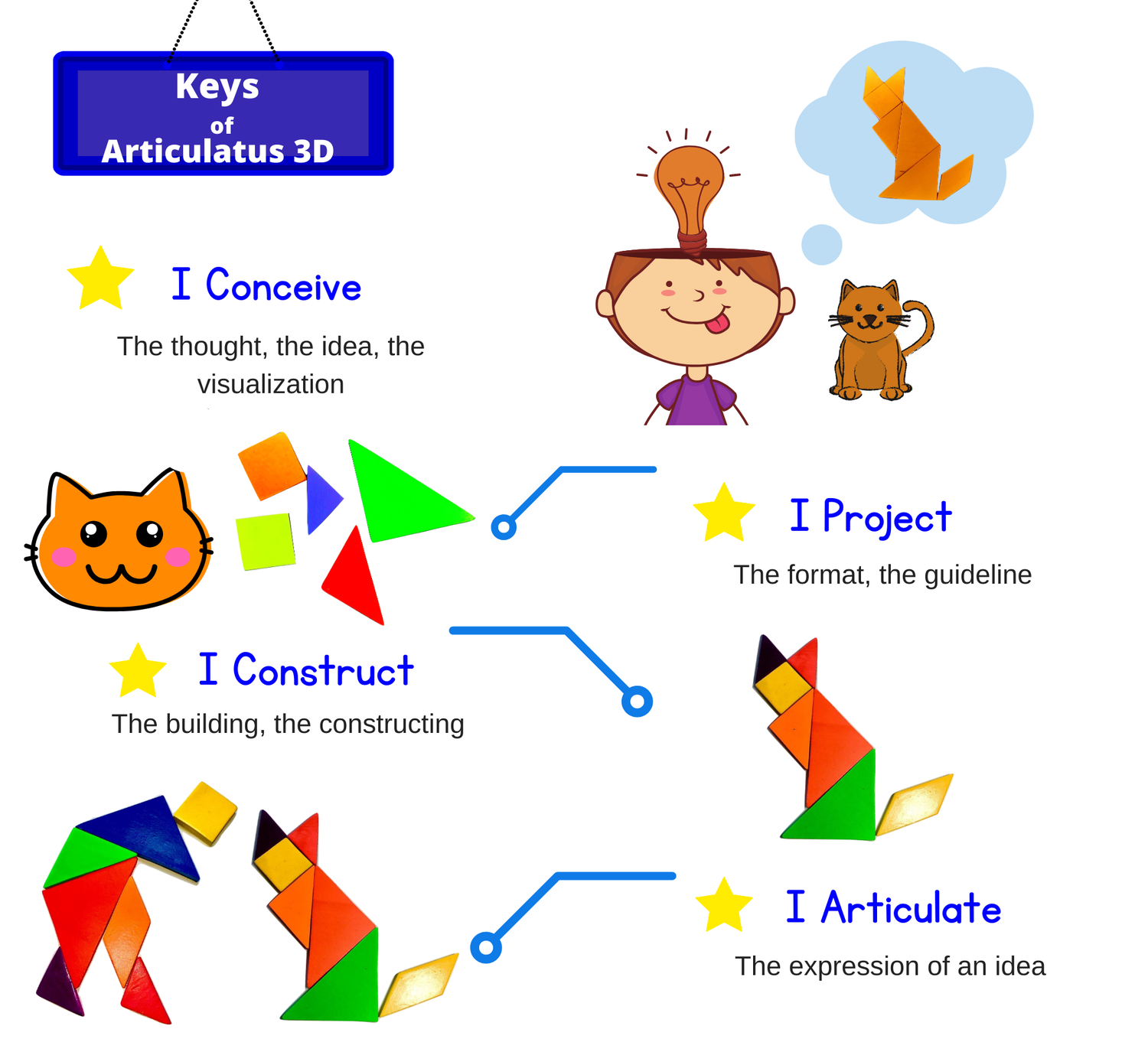 Using special Tangram shapes, creators young and old can create 3D scenes! No more being afraid of the dark in your bedroom. Say goodbye to nightlights. Articulatus 3D has helped many overcome their fear of being in the dark while allowing them to spark their inner creativity!
